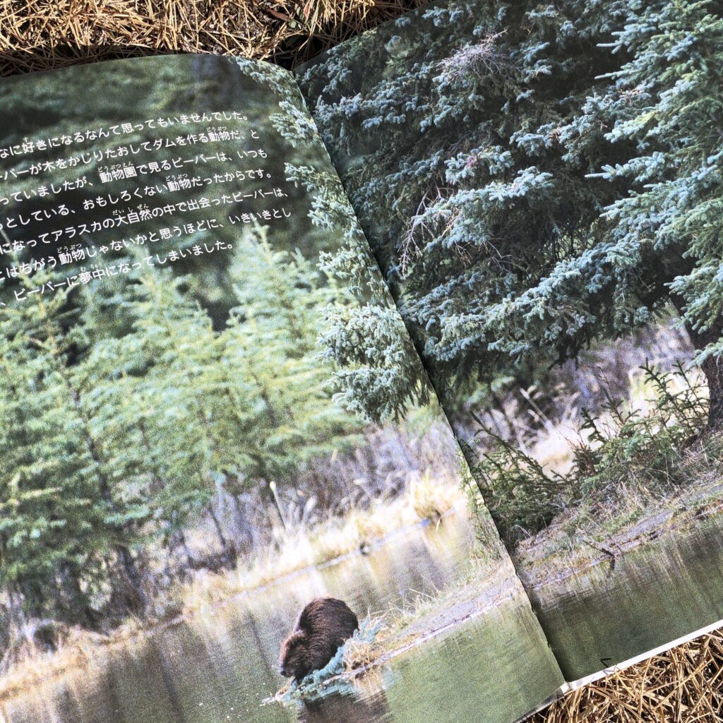 もともと野生のクマの写真を撮るためにアラスカでキャンプをしていたところ、近くの湖でビーバーの一家に出会い、すっかりとりこになってしまったという佐藤さん。ビーバーの住む環境や、生態について、美しい写真とともに分かりやすく教えてくれます。